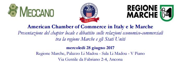 L'American Chamber of Commerce in Italy, è lieta di invitarvi a un incontro con il mondo imprenditoriale realizzato in collaborazione con Meccano Spa e Regione Marche in occasione dell’ufficializzazione della nomina della Dott.ssa Letizia Urbani, Direttore Generale di Meccano Spa, a Rappresentante Locale di AmCham per le Marche.